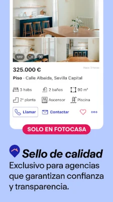 Открийте света на недвижимите имоти с Fotocasa – вашият надежден партньор в намирането на идеалния дом. Независимо дали търсите уютен апартамент под наем, мечтаната къща за покупка или споделено жилище, Fotocasa предлага несравнима база данни, за да улесни вашето търсене. Разгледайте богата палитра от имоти – от модерни апартаменти и луксозни вили до новопостроени жилища, удобно филтрирани по цена, брой стаи, бани, площ, квартал и тип имот. С Fotocasa стъпвате в едно ново ниво на търсене, където всеки параметър е важен за вашето съвършено съвпадение.