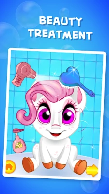 Грижете се за 7 очарователни домашни любимци – котка, куче, костенурка, заек, папагал, пони и панда. Децата ще се забавляват да разкрасяват и да се грижат за тези сладки бебета животни, развивайки чувство за отговорност и умения за грижа. Открийте света на грижата за животни!