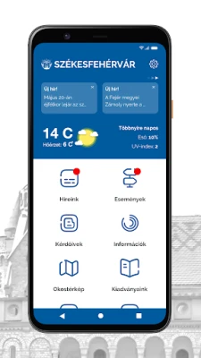 Приложението Székesfehérvár ви информира за актуални новини и събития в града. Докладвайте лесно проблеми, участвайте в анкети и помагайте на общинската управа. Получавайте персонализирани известия за пътна обстановка и съобщения от комунални услуги. Градът разчита на вас!