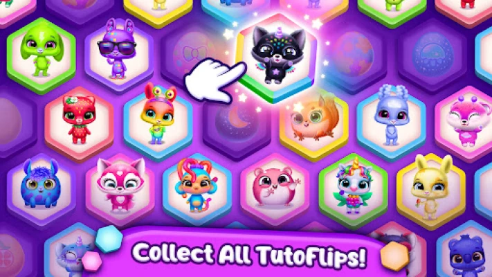 Стъпете в магическата Къща за кукли, където всеки събран питомец отключва нови, тематични стаи, пълни с чудни изненади. Взаимодействайте с вашите любимци, откривайте невероятни играчки и се наслаждавайте на безкрайни мигове на радост. Овладейте изкуството на хекс пъзелите, като свързвате и премахвате пъстри шестоъгълни плочки, за да събирате флипове, да "излюпвате" (отключвате) нови питомци и да отключвате още по-вълнуващи предизвикателства. Насладете се на нива, пълни с цветни препятствия, докато се потапяте изцяло в сагата „TutoFlips - Pet Doll House".