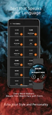Потопете се в света на дълбоката персонализация, предлагана от Willow watch face. Настройте прецизно размера, цвета и позицията на текста за час и дата, избирайки от над осем гъвкави формата за показване на датата. Добавете индивидуален почерк с персонализирани шрифтове от нашата разнообразна галерия и подобрете видимостта с опция за сенки на текста. Вие контролирате подредбата на слоевете, за да гарантирате перфектната композиция. Интегрирайте до три интелигентни усложнения, които ви дават мигновен достъп до важна информация – от ниво на батерията, брой стъпки и пулс, до прогноза за времето, събития от календара, аларми и кръгове за активност. Всяко усложнение може да бъде персонализирано индивидуално по цвят, за да хармонира идеално с цялостния ви дизайн.